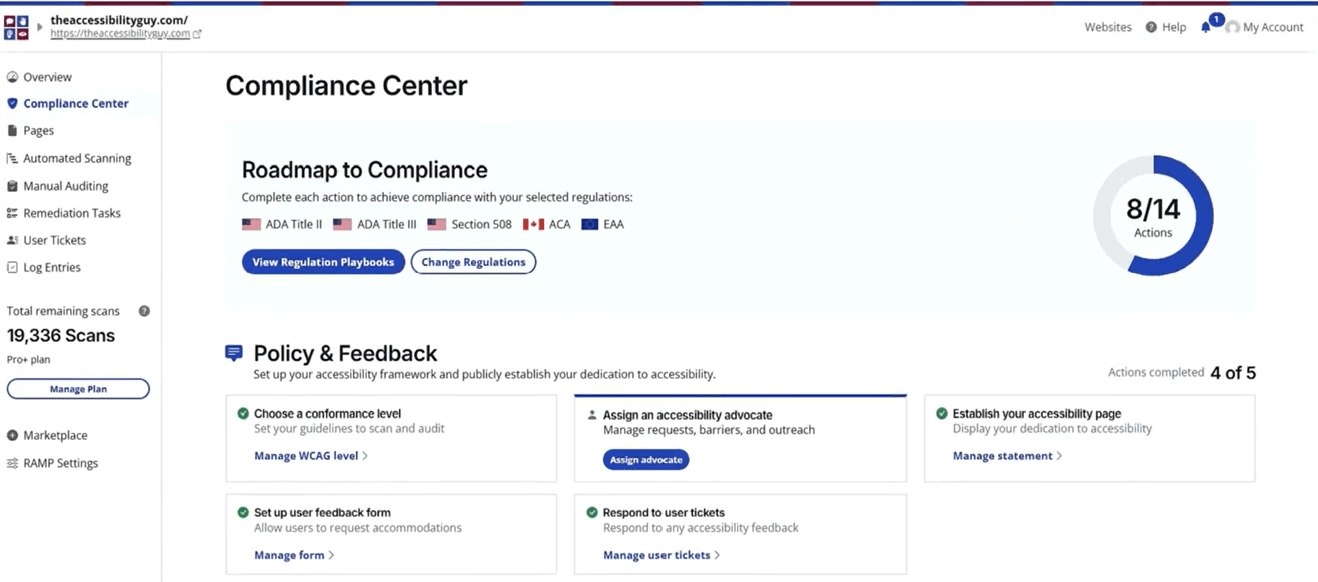 Accessibility requires ongoing monitoring. The platform lets you choose which pages to scan and how often to scan them.